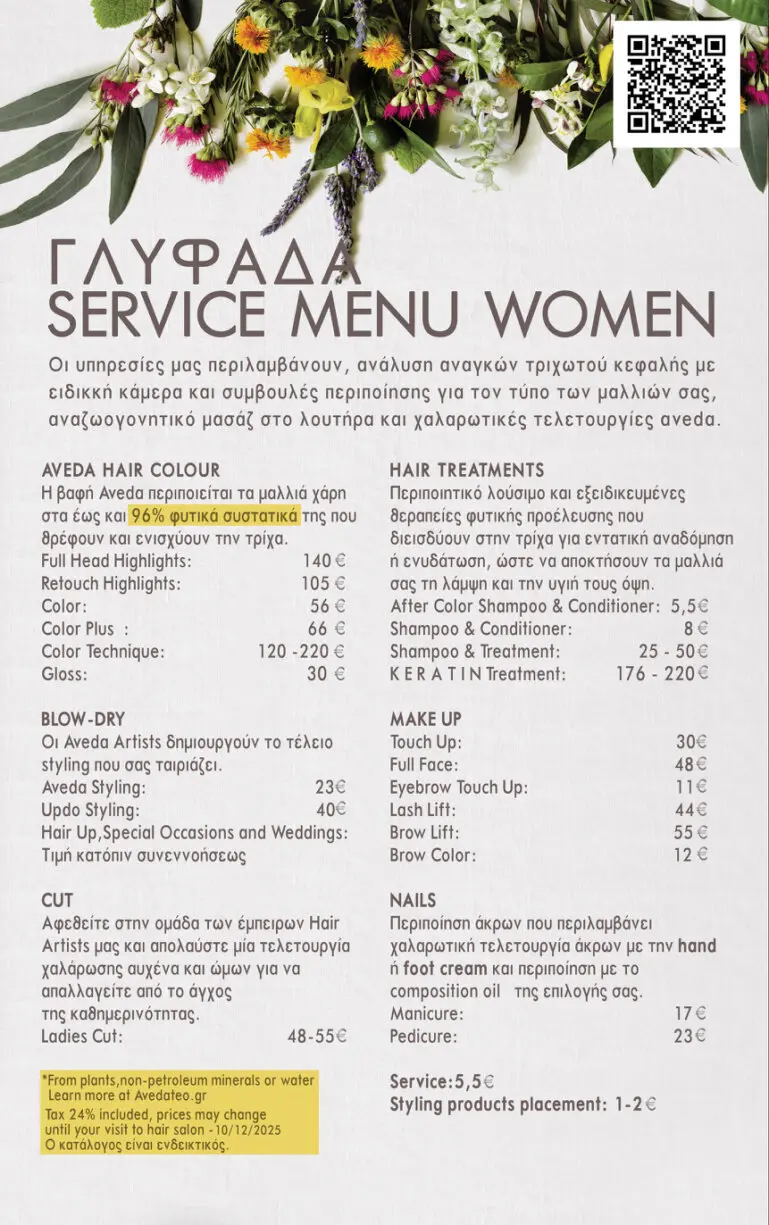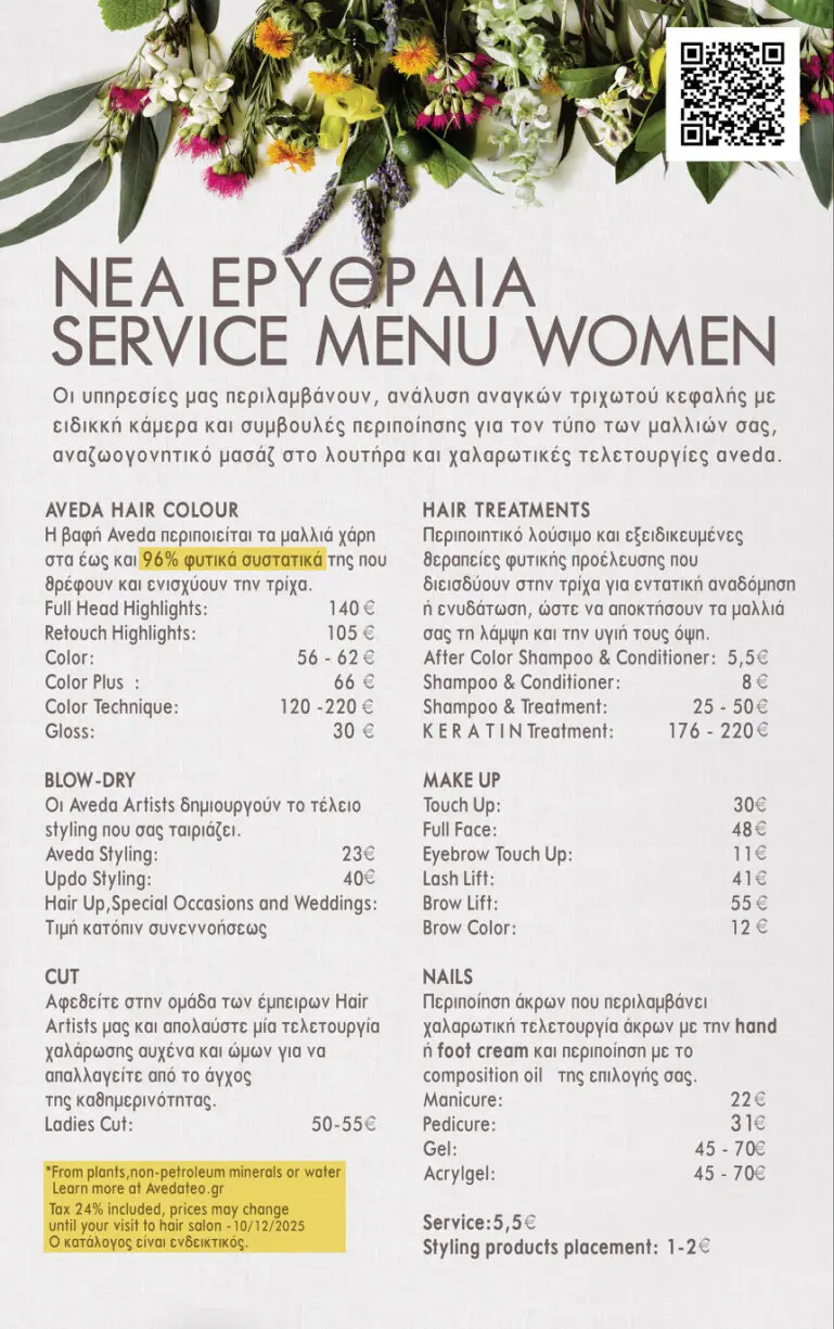 Price List - TEO Aveda Hair Salon